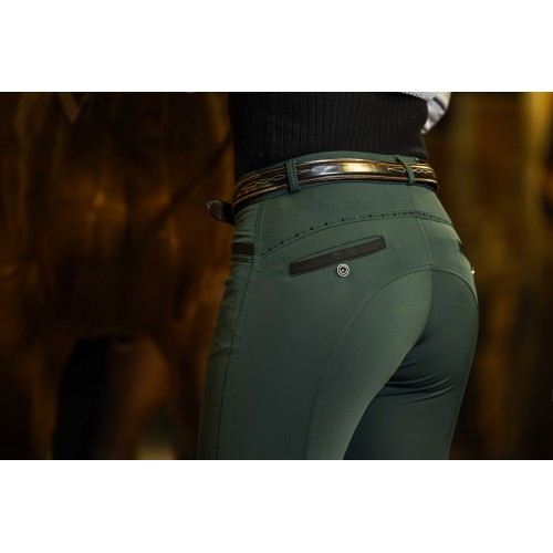 - Priekšējās un aizmugurējās kabatu daļas, kas izrotātas ar melniem mākslīgajiem dimantiem.